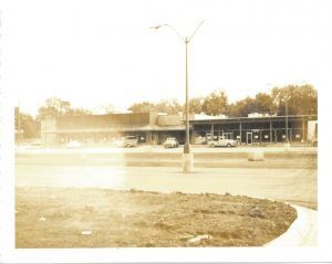 Brookwood started as a single building in 1959 that sat on the corner of 29th and Oakley. Six businesses represented the inaugural tenants: The Colonial Inn, a beauty shop, a barber shop, a liquor store, and a Scotch Cleaners. In 1963, the main shopping center expanded to the east with a Dillons supermarket serving as an anchor store for the mall. Other notable businesses in the center at the time included TG&Y dime store and Jayhawk Drug.